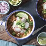• Ladle the posole into bowls and garnish with fresh lime juice and toppings of your choice.