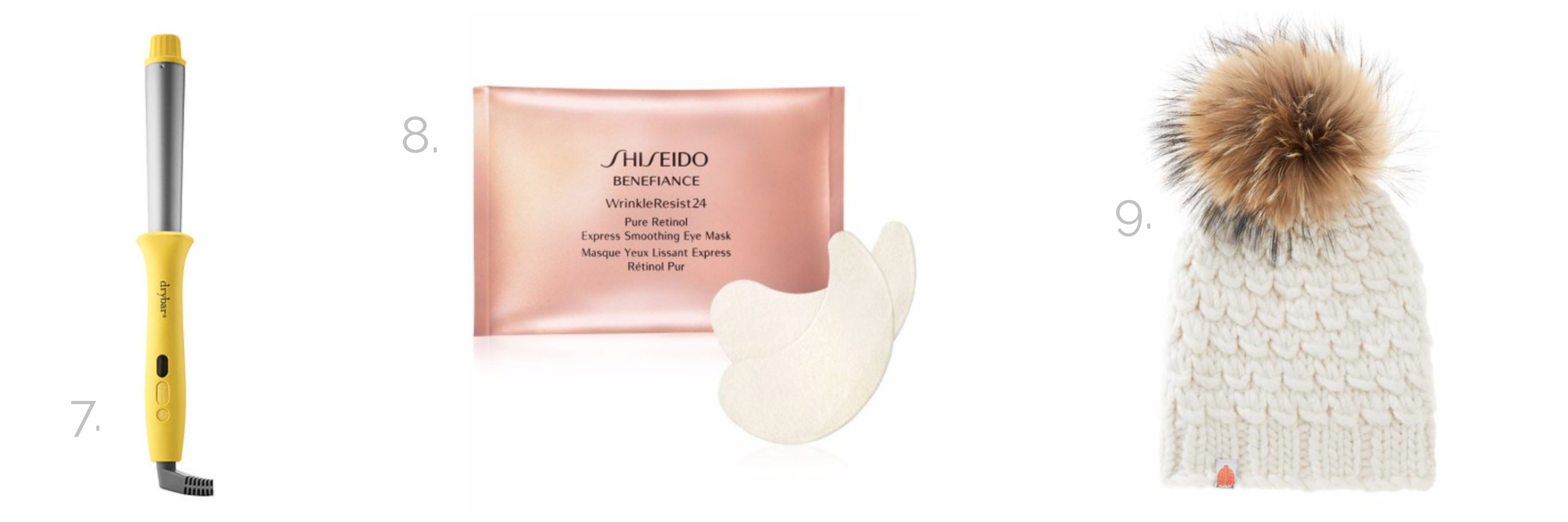 - Shiseido WrinkleResist24 Pure Retinol Express Smoothing Eye Mask. These are my second favorite eye masks ever (after the discontinued SK-II Signs masks that I am currently mourning), and I use them at least twice a week to keep me looking semi-alert. They’re not great for de-puffing, but they do slay fine lines and brighten up the dark circles. Love them for anyone (male or female) that deserves to look like a pretty young thing.