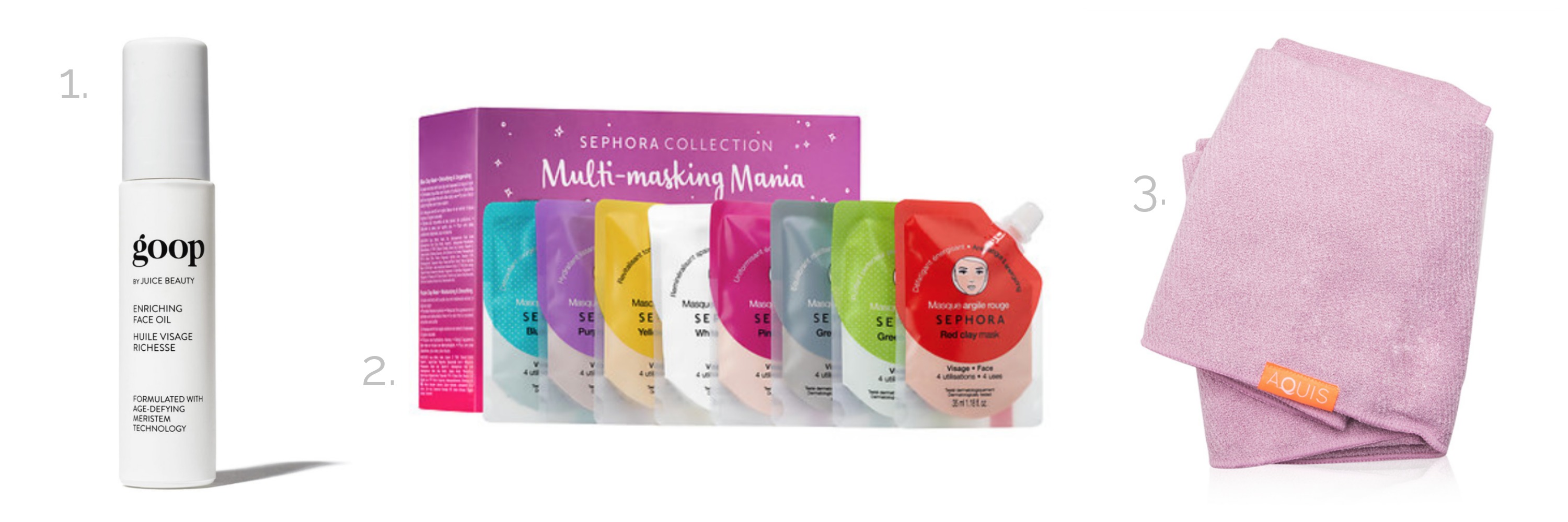 - Sephora Multi-Masking Mania Clay Mask Blockbuster Set. I’m an unapologetic facemask addict, and these clay masks are some of the best I’ve ever used. (I also really dig old school masking over sheet masking because the latter is messy, restrictive, and sticky.) My personal favorites are the green (cleansing), red (calming), and blue (oxygenating) masks, but I like that this set provides a little somethin’ somethin’ for everyone. Gotta love a cornucopia of beautifying options!!