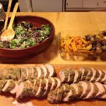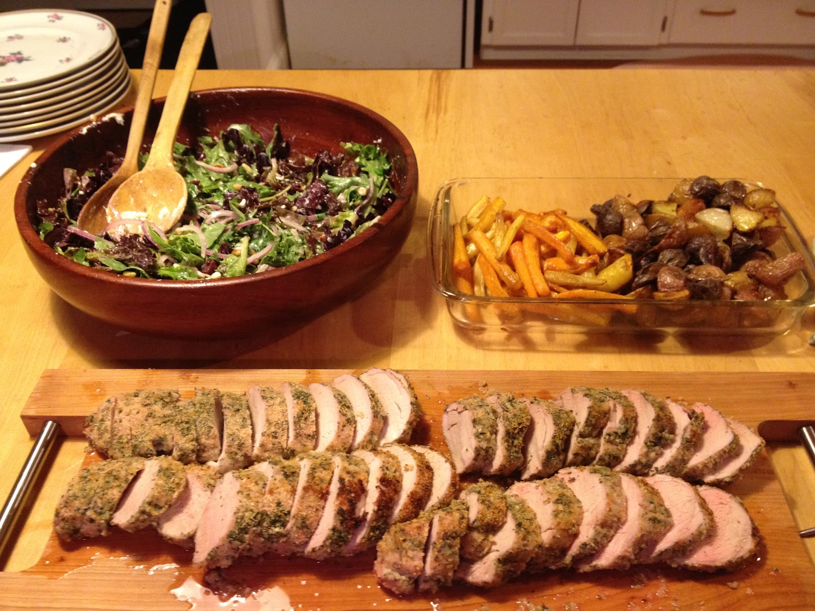 A couple of weeks ago, I cooked a delicious dinner for ten. On the menu: herb crusted pork tenderloin with a classy goat cheese salad and roasted carrots and potatoes.