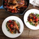 Elaine, you could definitely do this with just breasts or thighs! In fact, that would make it a super easy meal. If you’re using bone in breasts and thighs, I would decrease the cooking time to 40-50 minutes (depending on size) and add the tomatoes, mushrooms and onions about halfway through. You don’t need to cover them with foil unless they start to get too dark.