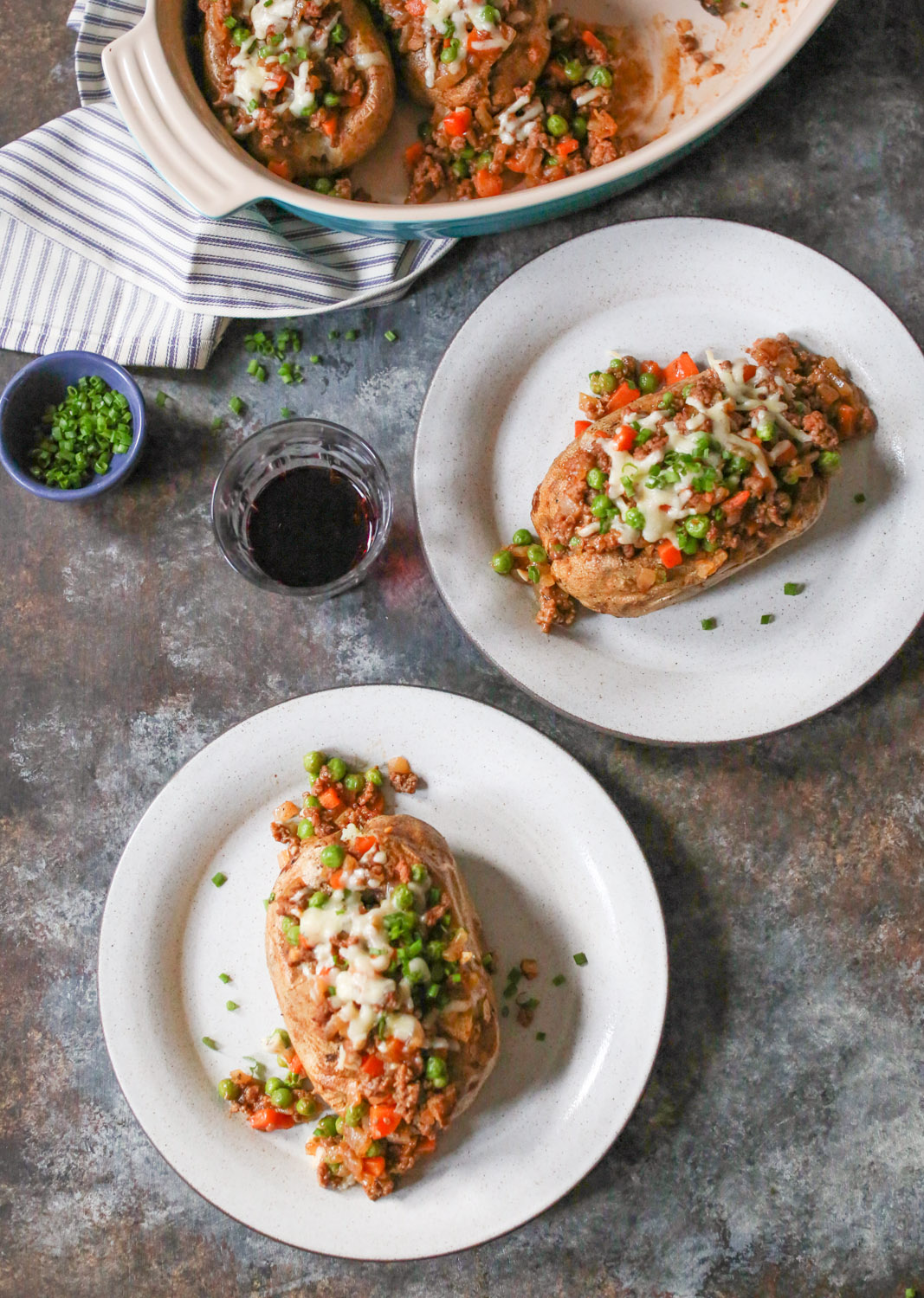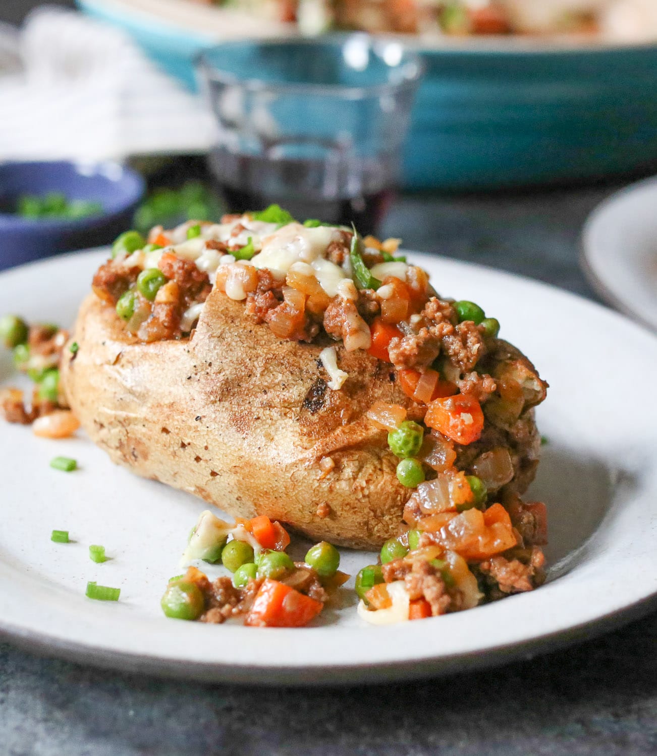 These potatoes are unreal, peeps. Prior to making these bad boys, I couldn’t remember the last time I’d had a baked potato, and I forgot just how awesome they are. So fluffy and starchy and satisfying, especially with a little olive oil and Gruyère mashed in. And I’m an absolute sucker for this cottage pie filling that’s spiked with Worcestershire, soy sauce (which gives it an unexpected umami depth), and fresh thyme. Truth be told, I often make the filling on its own and serve it over quinoa or brown rice, or top it with an egg for a sassy desk lunch. It comes together in all of 15 minutes, so it’s an excellent weeknight go-to, and you can easily make a double batch when you have a little extra time on Sunday or Monday to eat throughout the week. (FYI, it freezes well!)