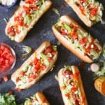 p.s. The street corn guacamole is delicious insanity. It’s loaded with grilled sweet corn, lime, cotija, cilantro, and chili powder, and the sweet and savory flavors literally explode in your mouth. Even if you hate hot dogs(??!!), I highly recommend making this guac for dipping, tacos, burgers, sandos, toast, etc. Seriously.