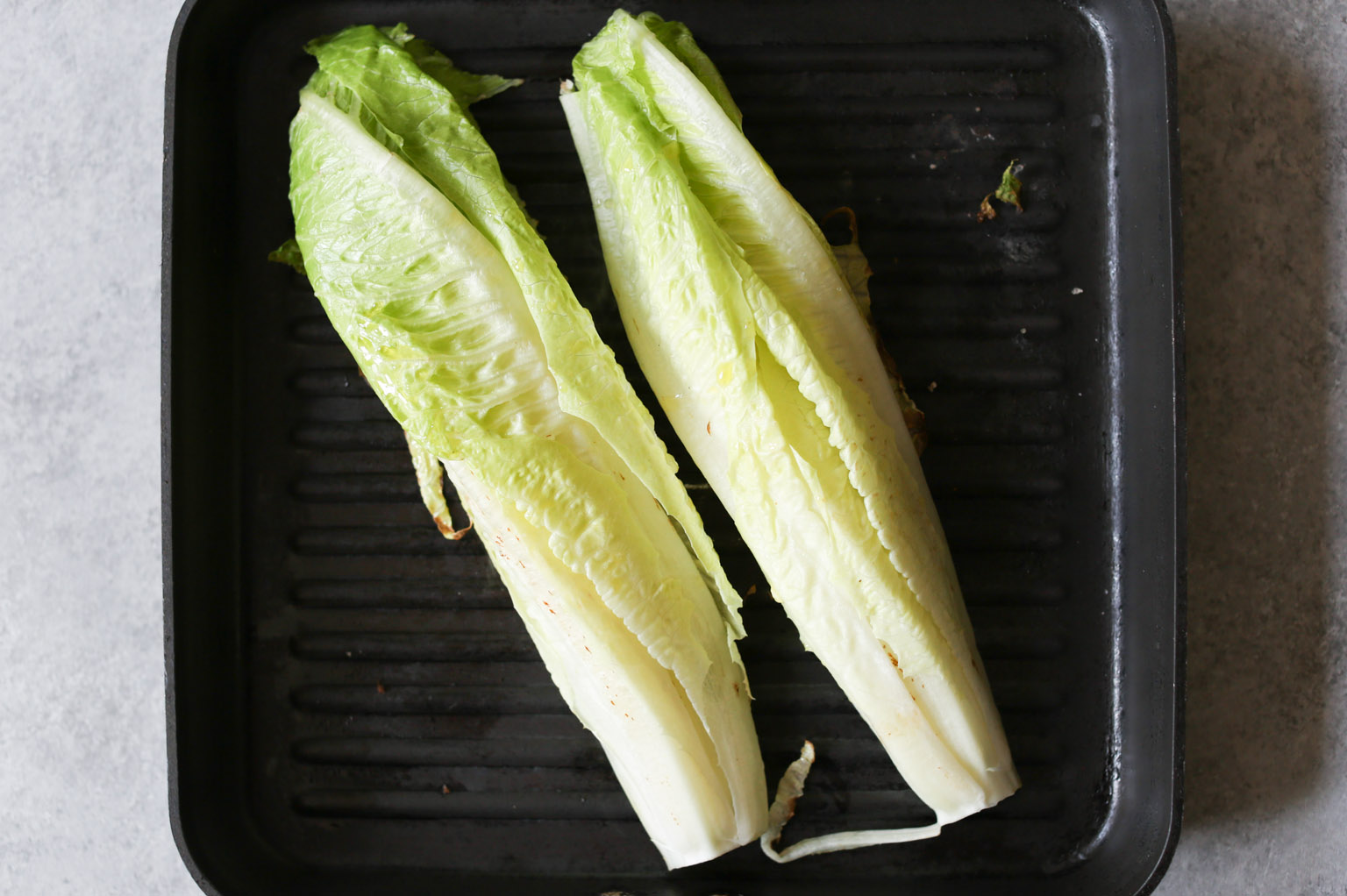 -Cook for 2-3 minutes, just until grill marks appear and the leaves have softened slightly. Transfer the romaine to a serving platter or individual plates.