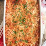 • Let your lasagna quinoa bake cool for 5 minutes before serving. Feel free to garnish with extra basil and crushed red pepper if you’re into that.