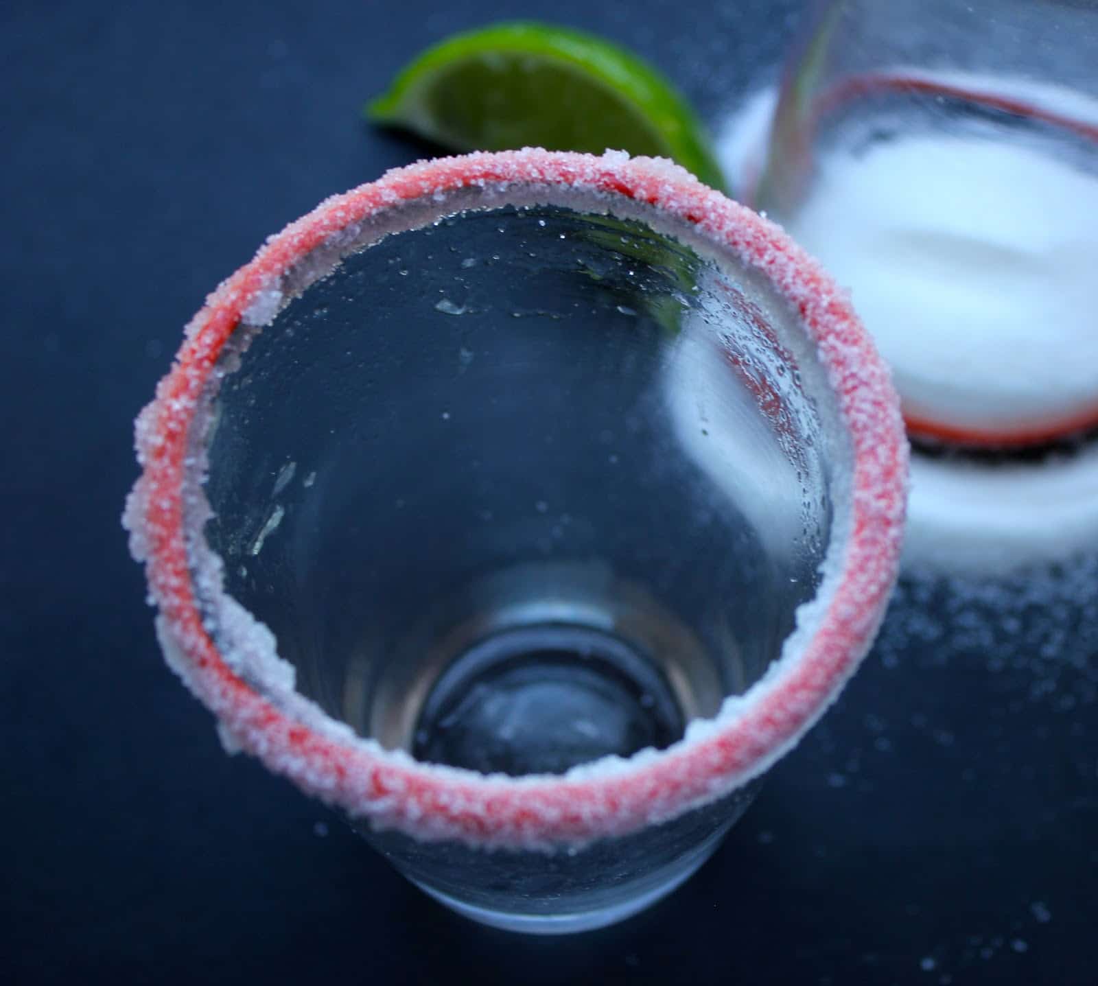 -Pour salt on a cutting board or in a small bowl. Run a lime wedge around the rim of each glass, and then dip the rim in salt. Pour your margs into the salt-rimmed glasses and get weird.