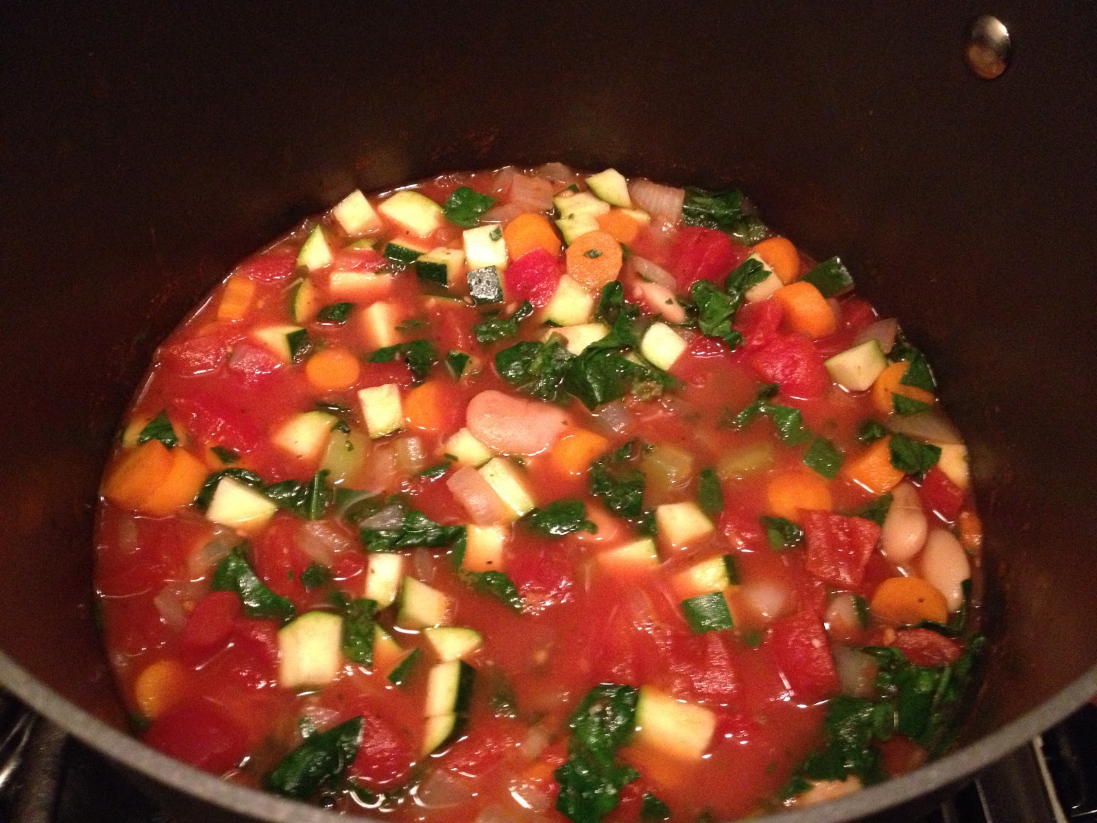 -Add the diced zucchini and spinach and let your minestrone simmer for another 30 minutes.