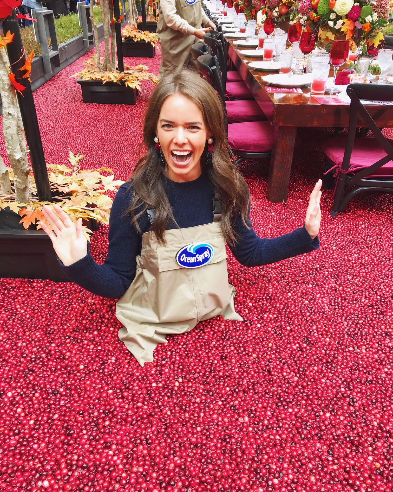As a longtime fan of Ocean Spray’s commercials—you know, the ones with their farmers spouting witticisms while knee-deep in cranberries?—I’ve always thought it would be deeply satisfying to wade through a cranberry bog. Then last year, I saw some pics on Instagram of bloggers doing just that in the middle of NYC. I remember saying to my roommate, “How does one snag an invite to this glorious event??! I have to do this!! DO WE HAVE ANY CRANBERRY HOOKUPS?!”