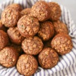 What’s on your summer bucket list? Does it include zucchini bread? Because it should. Specifically these bite-size beauties, which are my personal favorite way to eat zucchini bread. I love tiny food (duh), but I also dig that these bites are ideal for on-the-go breakfasting/snacking, and they freeze like a dream. They’re packed with whole-grain goodness thanks to a combo of whole-wheat flour and rolled oats, lightly sweetened with pure maple syrup, and kept moist (sorry) with unsweetened apple sauce. Not to mention the nutritional boost provided by their namesake zucchini. Zucchini bread bites are the perfect way to take advantage of a summer zucchini haul, and I’m keeping all my fingers and toes crossed that they make an appearance in your kitchen.